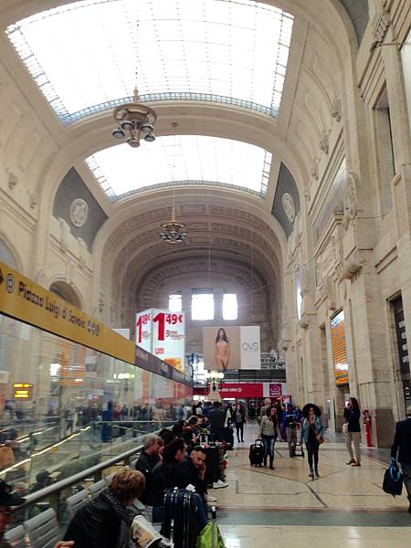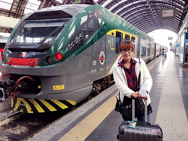 在米蘭車站等了一下就發現火車已經到月台,因為買的是二等席不對號座位,立馬先上車搶位,這決定果然是對的,後來很多人都只好站在門口。我們買的是電子票,不用打票,但一路上也沒人查票,倒是隔天去威尼斯的車上有大姐來查票。