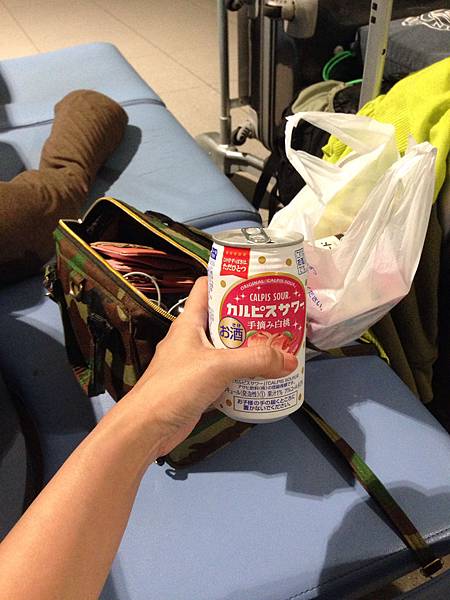 好不容易出關,先到撈森買瓶酒,喝喝好助眠!椅區處處是屍體,我懶得跑到對面租借毛毯,反正穿著外套還嫌熱的氣溫應該還好,就近找了一排椅來躺,旁邊是美女,行李超多,不知是要趕飛機還是回國?