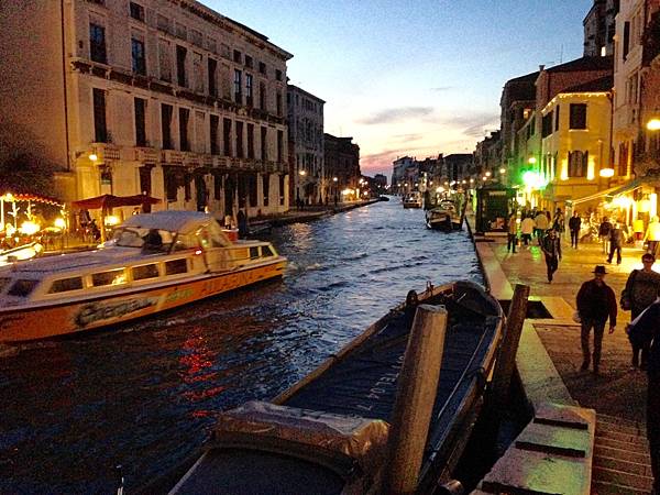 我們不時互拍,他們也很愛拍,自拍互拍樣樣來,還問我們要不要跟他們換情人雅座?我們是沒差啦,側面看得更廣些!30分很快就過去了,上岸後還小聊一下,他們才玩七天,威尼斯只待兩天,很羨慕我們玩兩週,明天就要出發去西西里島曬太陽(我們在台灣曬怕了),有機會也想到亞洲玩玩,依依不捨與他們分開後,