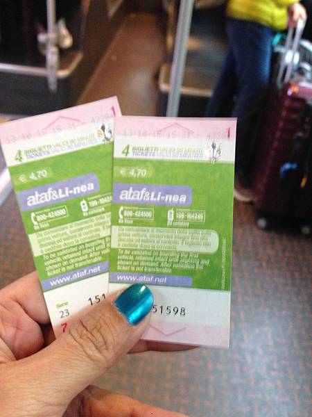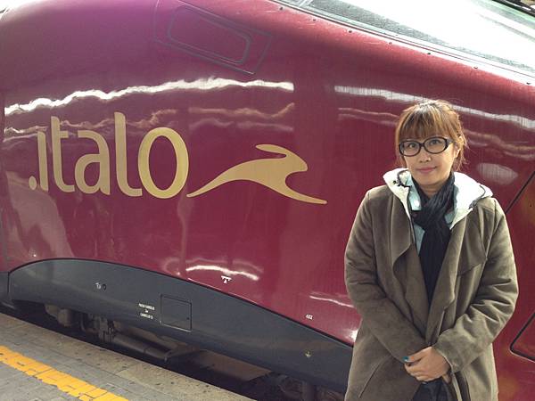 italo的位子是四個月前訂好便宜車票,一個人才19歐還對號座喔!只是放行李的地方很小,一下就客滿,列車服務員幫我們把行李箱抬上座位上的置物架,真是讓人鬆了一口氣。但搬下來就得靠自己了,還好兩個人搬!