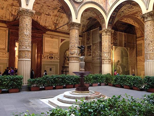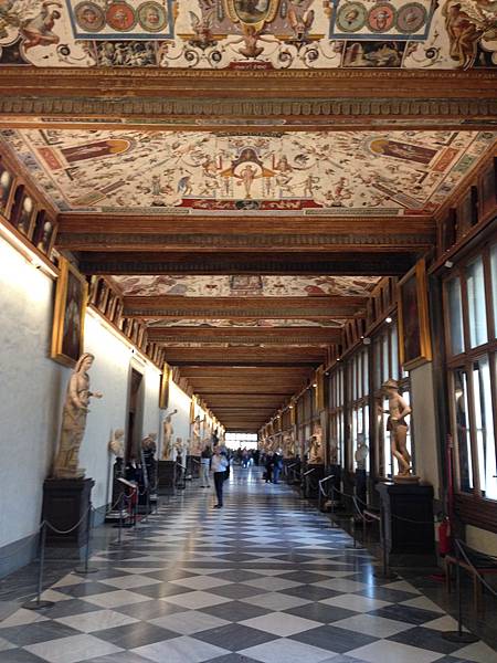 迴廊中排滿了雕像與各式畫作,這真的是藝術之城,