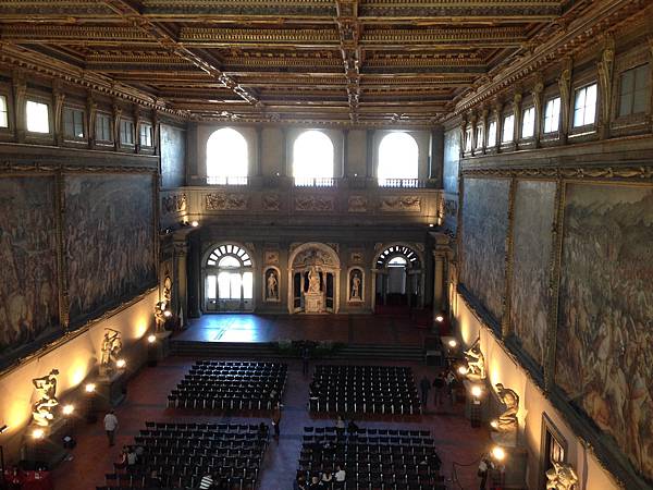 傳說中五百人的大廳,跟在威尼斯的總督宮大小差不多,但畫就大很多,想像書中說穿越棚頂畫跌死在地面的女兵,是哪一幅呢?